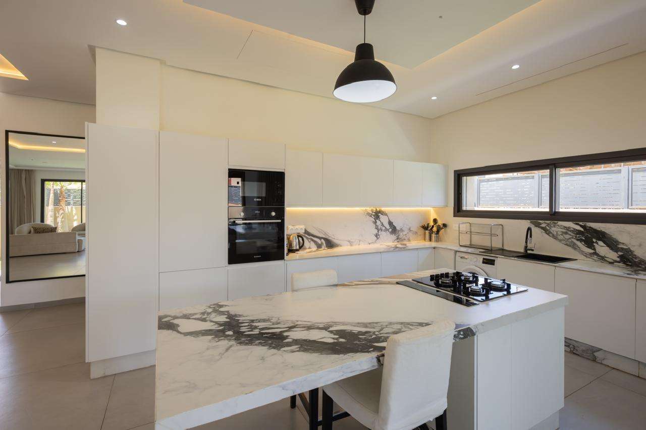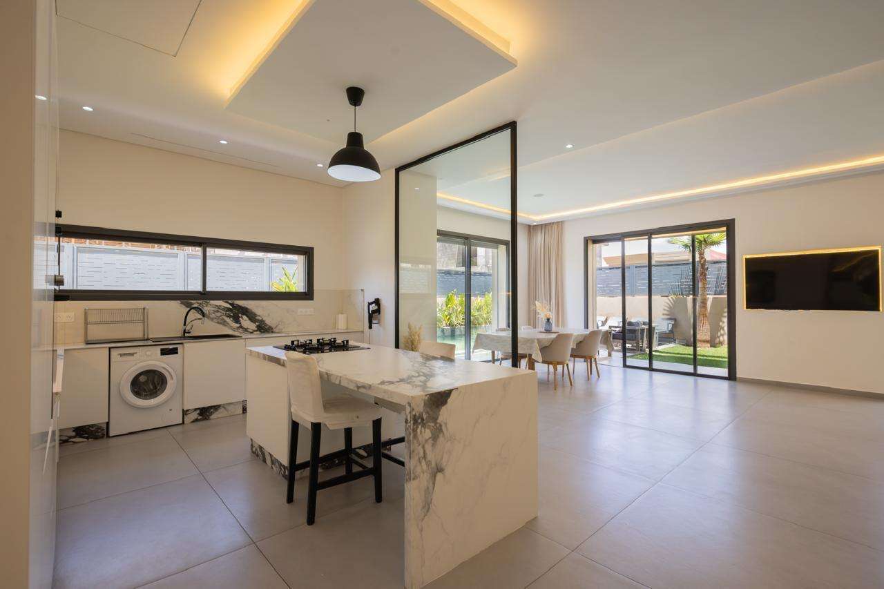 Villa située au sein de la résidence Akenza, composée de 4 chambres spacieuses et bénéficiant d’une piscine chauffée, idéale pour un confort optimal toute l’année. Loyer mensuel : 40 000 DHS. Conditions : 2 mois de caution et 1 mois de loyer d’avance.